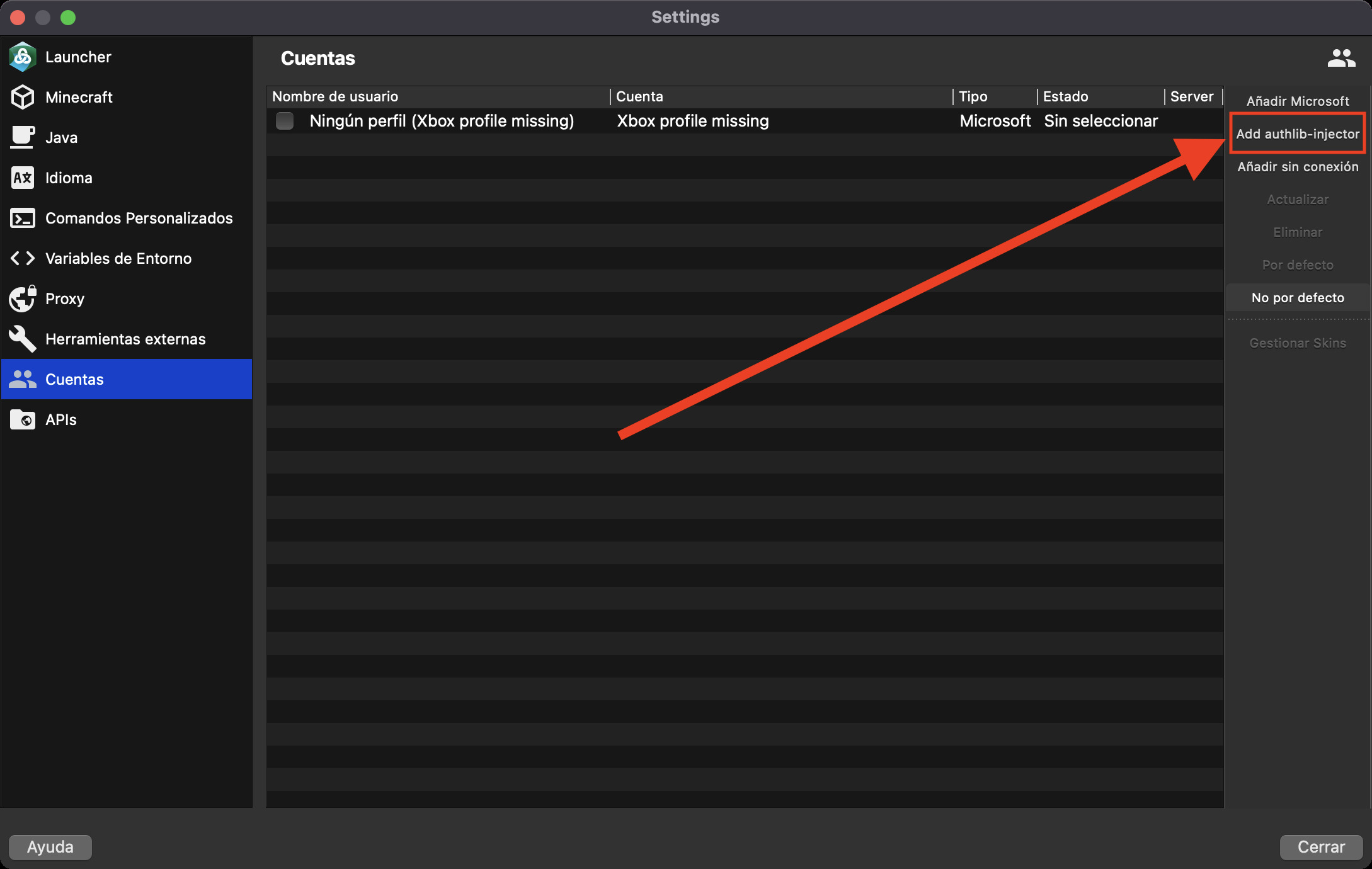 Ya puedes cerrar la configuración de cuentas y solo queda instalar el modpack