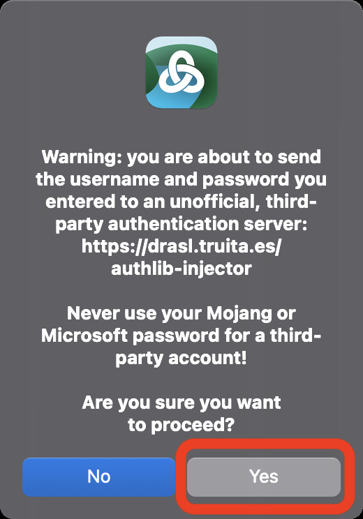 - Pulsa Ok, y luego Yes (estamos enviando el código, no una contraseña personal)